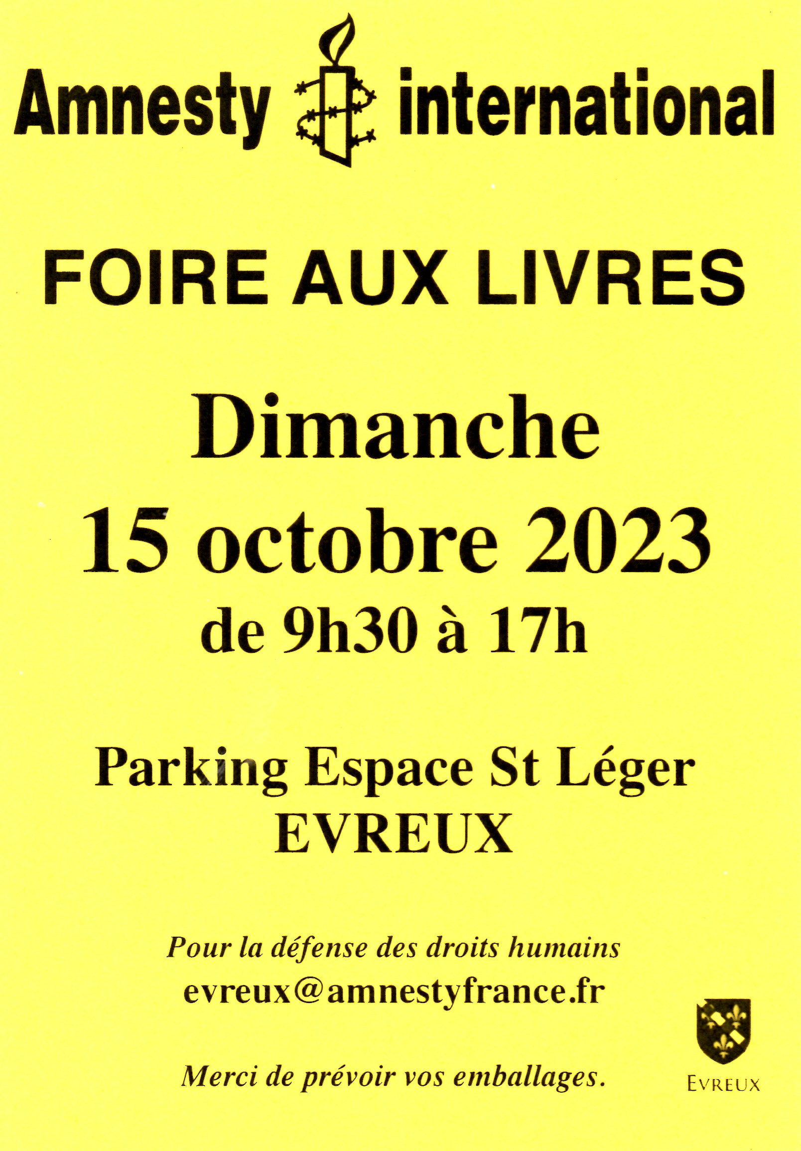 L'actualité des droits humains par Amnesty International Évreux: coupe du monde de rugby, dernier grand événement avant la surveillance algorithmique? Crise humanitaire à Lampedusa, reflet de politiques défaillantes; révélations Disclose, les dérives meutrières du partenariat franco-égyptien; Soudan: la population confrontée à des horreurs inimaginables; Arabie Saoudite et peine de mort; Winner, enfant scolarisé à Évreux, ne doit plus dormir dans la rue; infos locales: on vous attend le dimanche 15 octobre pour notre Foire aux livres...