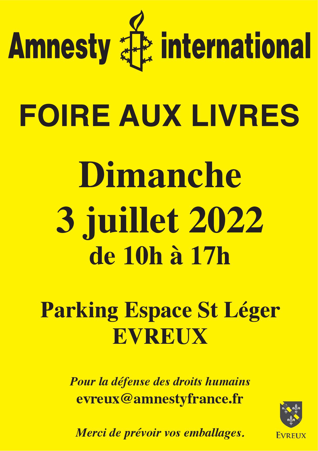L'actualité des droits humains par Amnesty International Évreux: remise en cause du droit à l'avortement aux USA, une grave atteinte aux droits des femmes; Tunisie, l'ombre de la dictature; délit de faciès en France, et graves atteintes aux droits humains dans les prisons françaises; infos locales, émission "Fréquence droits humains" sur les réfugié.e.s le 30 06 ( http://frequence-droits-humains.principeactif.net/podcasts/journee-mondial-des-refugies) et FOIRE aux LIVRES dimanche 3 juillet